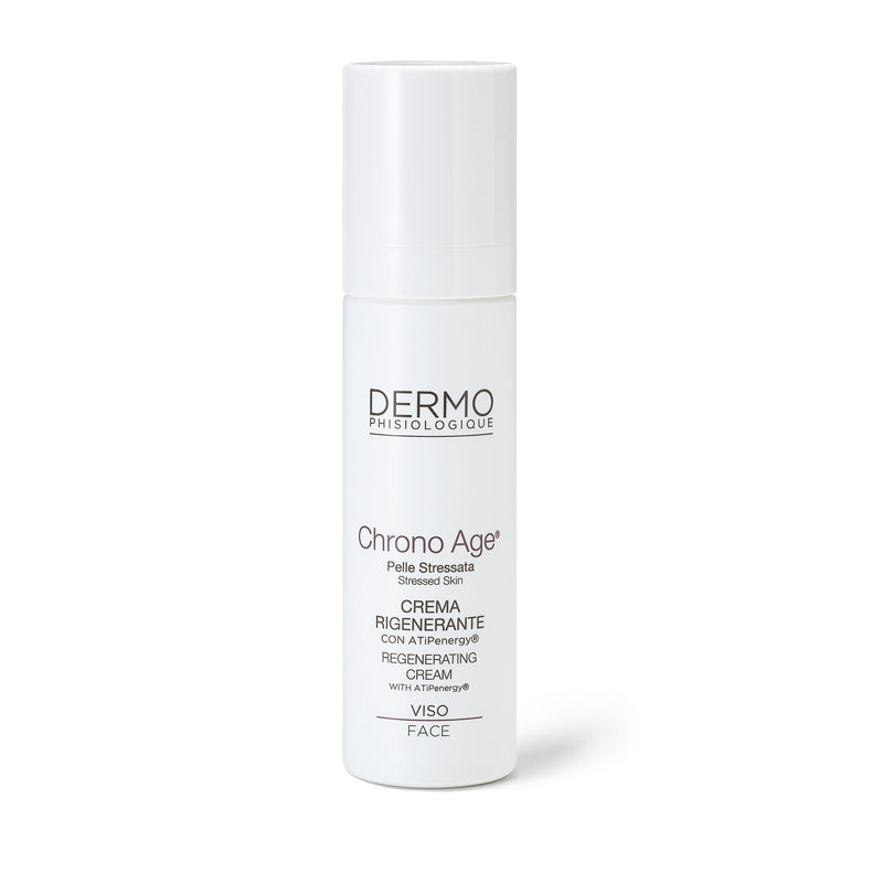 Con ATiPenergy®, un fitocomplesso composto da principi attivi di origine marina e vegetale, e Isoquercetina, la Crema Rigenerante Viso Chrono Age® rafforza e protegge la pelle dalle aggressioni esterne e dal passare del tempo. Questo prodotto migliora l'aspetto della pelle, donando tono, turgore ed elasticità, riducendo le rughe e prevenendo rughe, atonie, macchie, eritrosi, secchezza e disidratazione. Ideale per contrastare il crono-invecchiamento e il foto-invecchiamento, la crema lascia la pelle visibilmente rigenerata e compatta.